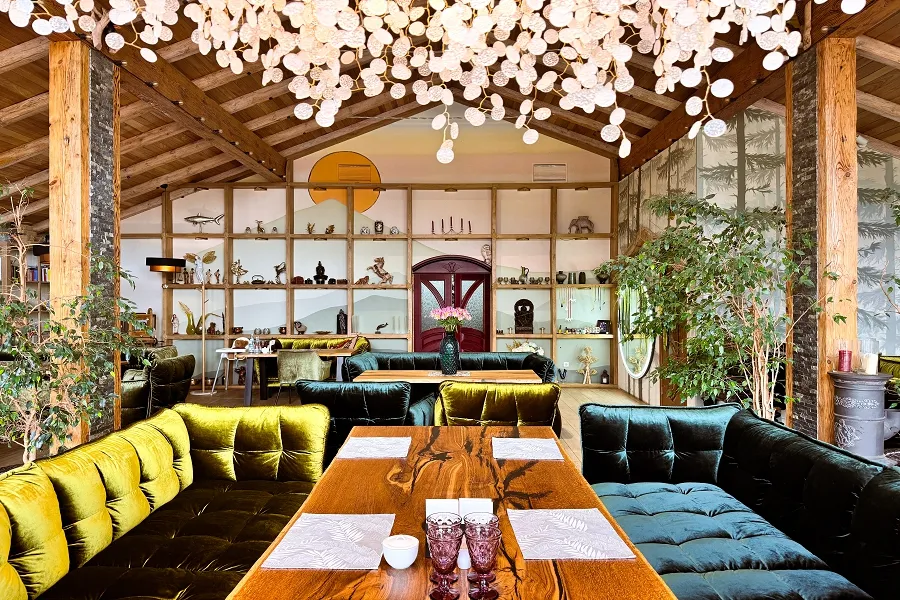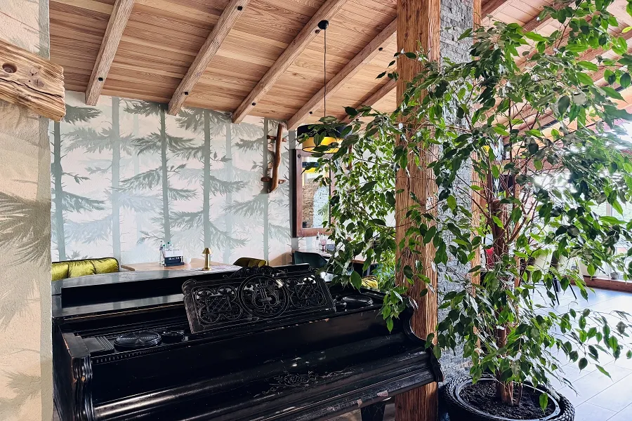 Інфраструктура: Затишна зала з каміном у стилі шале (до 40 місць).
