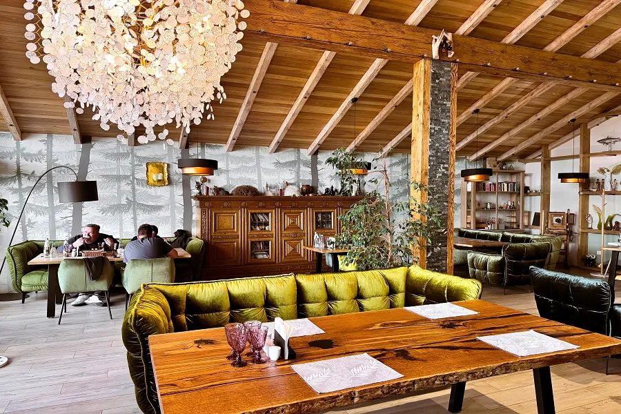 Відкрита тераса посеред лісу з краєвидом на Східницю та заповідний ліс (до 20 місць). Ресторан знаходиться на території Парк-готелю ЩАСТЯ (12 номерів).
