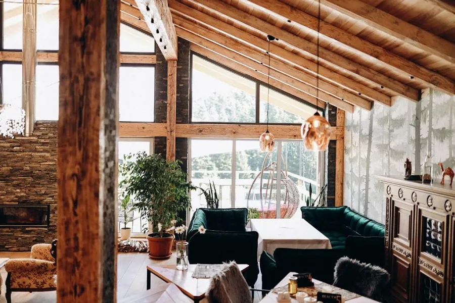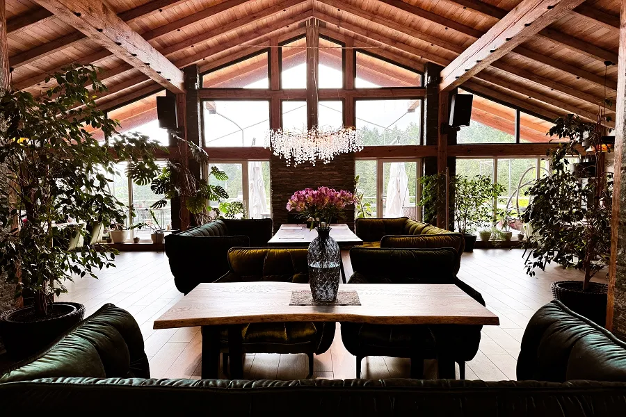 Інфраструктура: Затишна зала з каміном у стилі шале (до 40 місць).